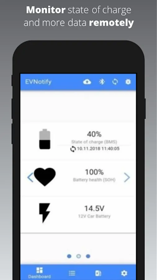 EVNotify allows you to track the state of charge as well as data such as charging power of your electric vehicle from distance. It gives you notification when the desired state of charge has been achieved or your charge interrupted!