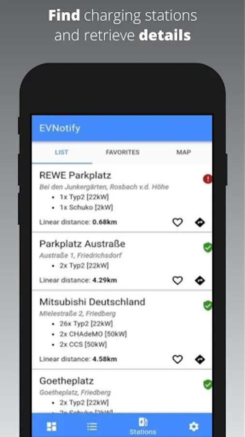 Since the new update of EVNotify, you can also find charging stations to have an overview at any time, where you can charge next.