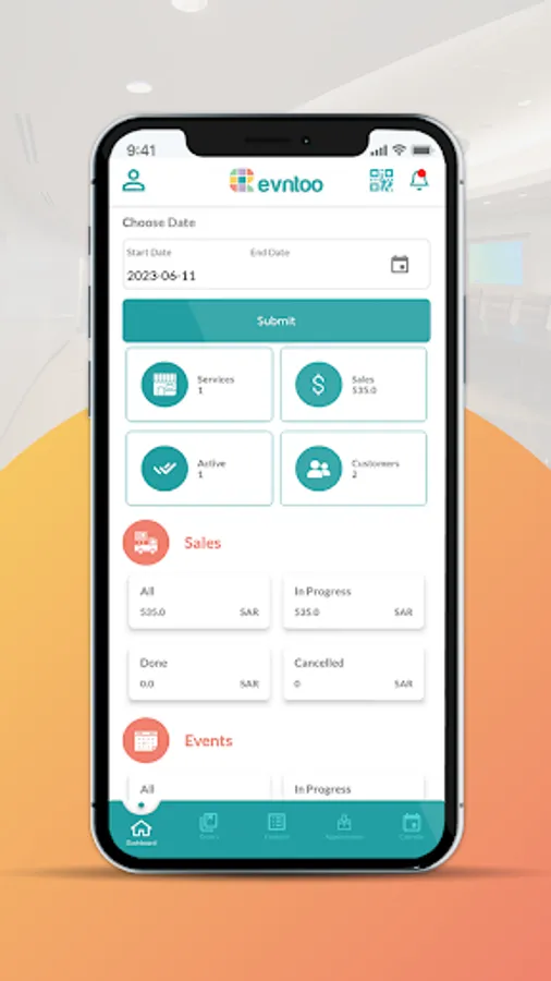 - The Evntoo system provides you with a smart control panel and an easy-to-use application to control your services, service prices, sales, invoices, reservations, and all necessary administrative reports that will save you from any other administrative system.