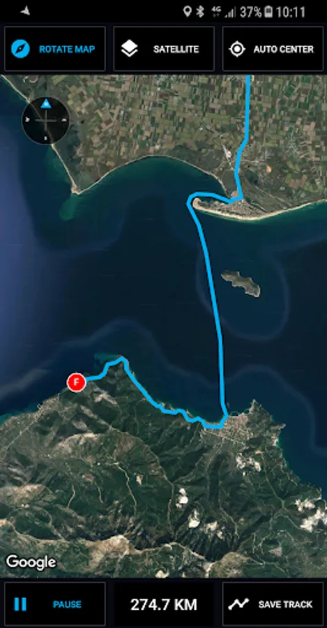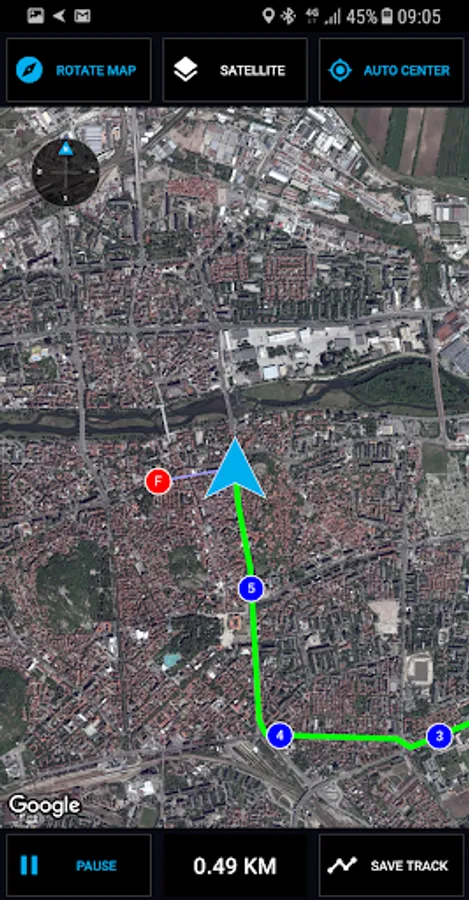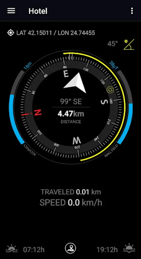 Disclaimer: If your device don't have compass (magnetometer sensor) the arrow will rotate only if you travel! Please point the top of the device to the direction of your movement.