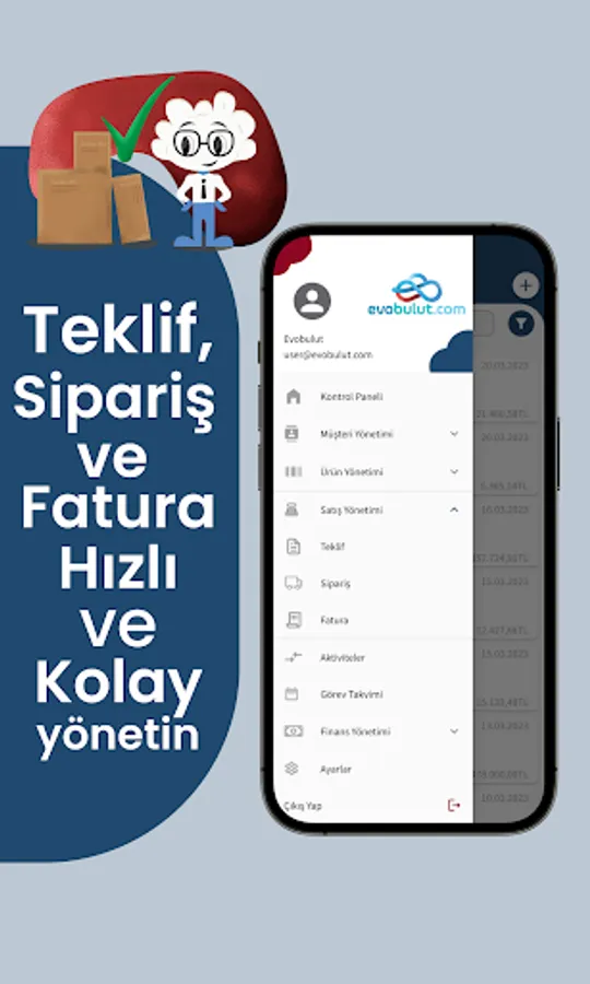 Evobulut is a cloud-based accounting and sales management program that offers a mobile application, giving you the power of information at your fingertips. You can use Evobulut's mobile app from any device with an internet connection by entering your user information, allowing you to manage all the processes in your company from anywhere you want.