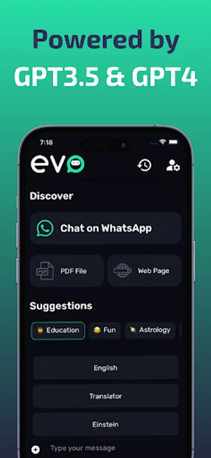 Powered by GPT3.5 and GPT4: Evo utilizes the most advanced language models for an unmatched conversational experience.