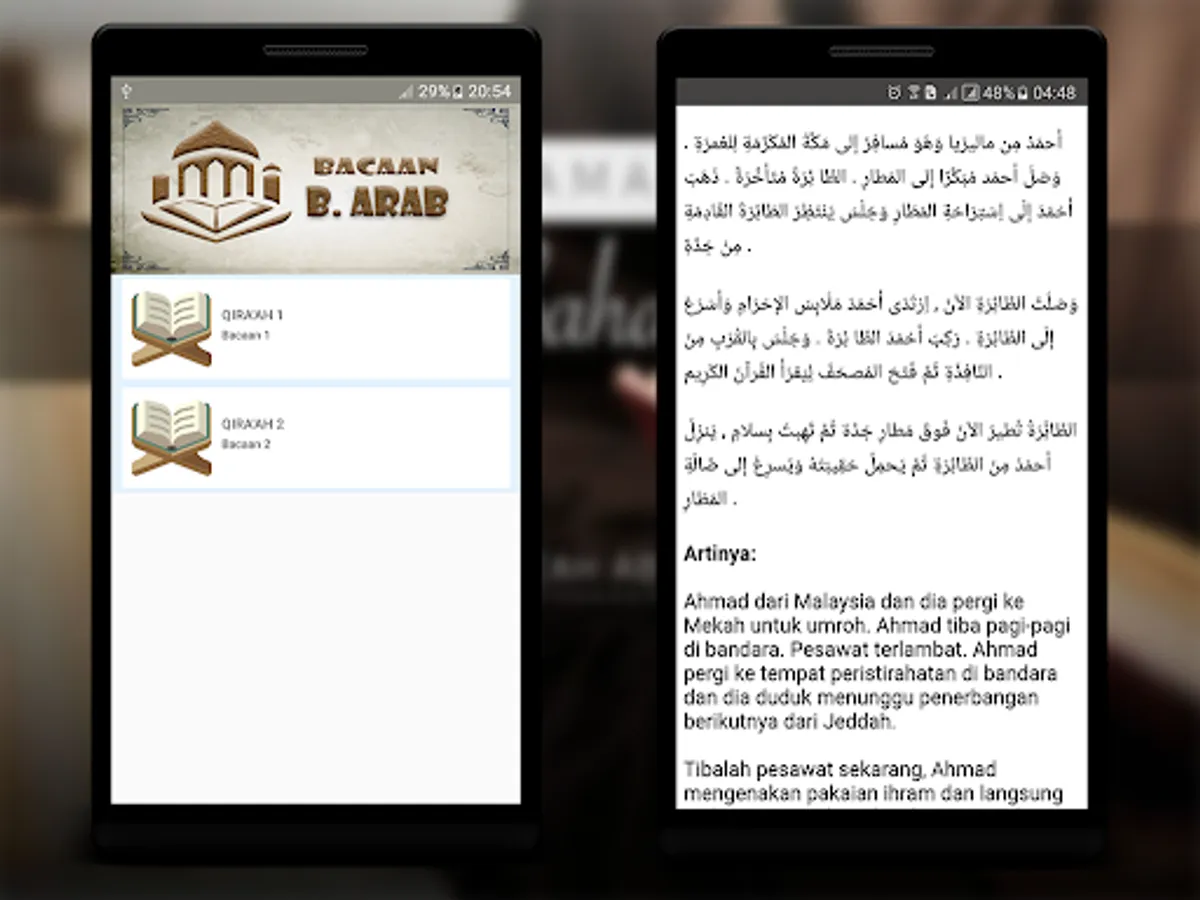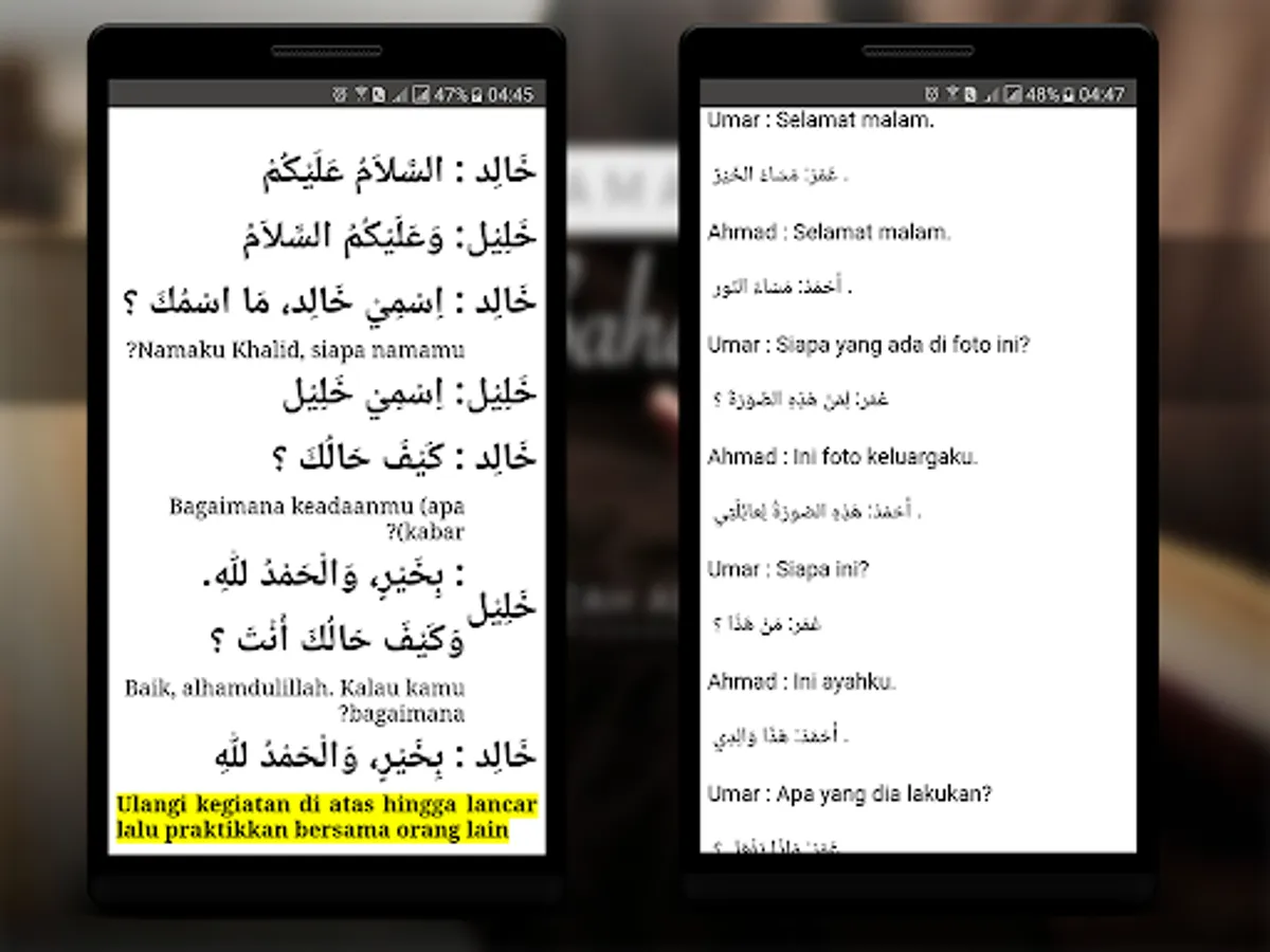Everyday Arabic Learning Application contains a collection of examples of Arabic conversation and Indonesian translations of various themes,