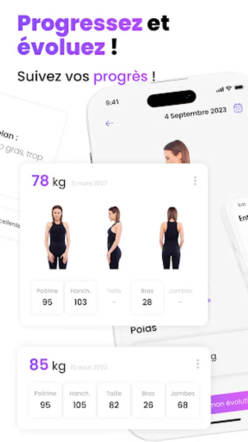 In-depth Development Assessment: At the end of your program, the E-Coach guides you through a progress assessment. Take your measurements, upload photos, track your weight. This comprehensive process allows you to track your progress and reevaluate your goals.