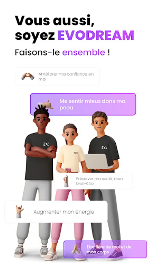 Evodream embodies the idea of a metamorphosis towards your dream, towards your goals. Join a thriving community of users and embrace a new lifestyle by evolving at your own pace.