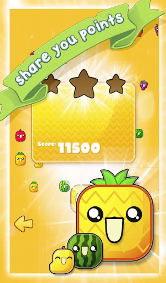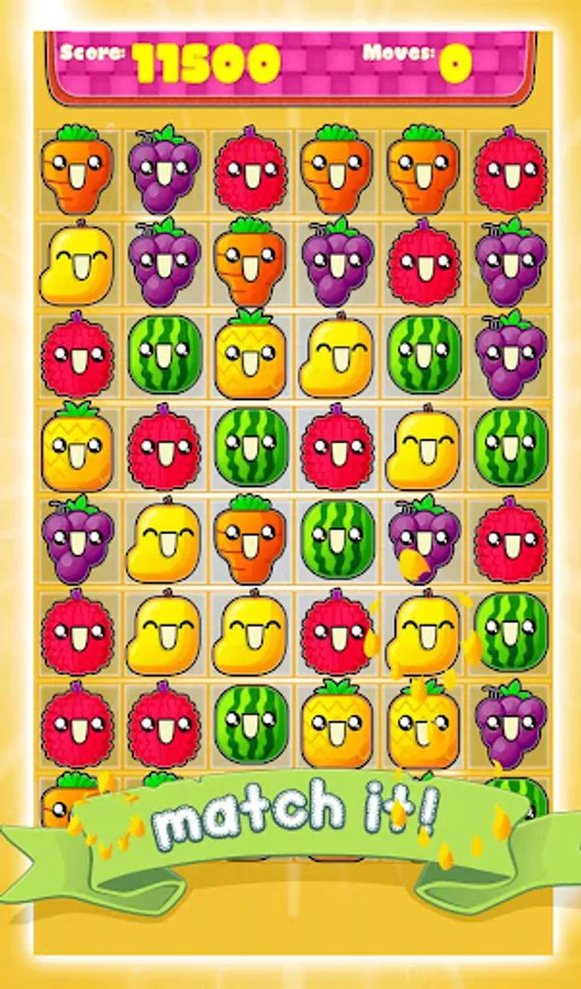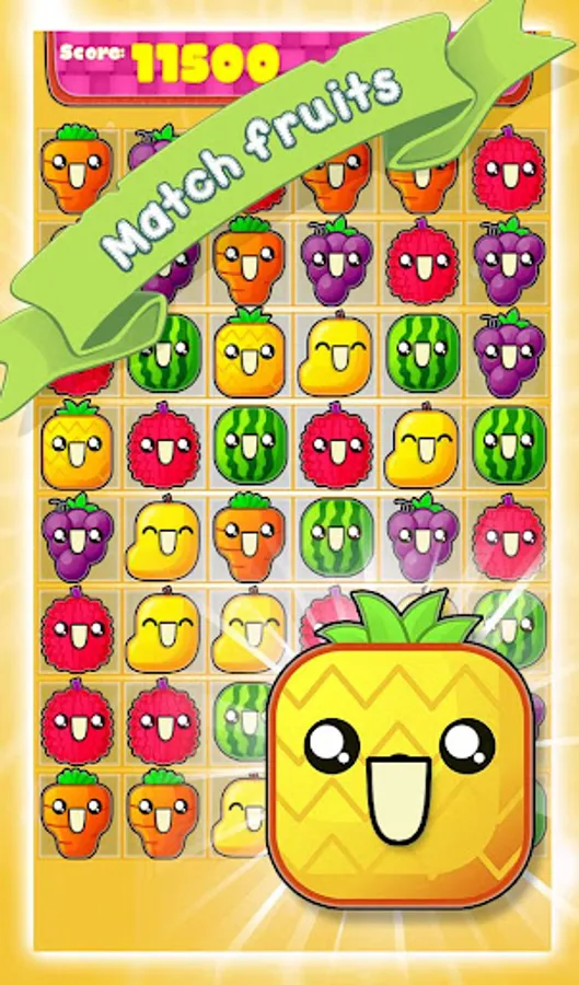The goal is simple is just combine fruits of the same type fun match-3 puzzle, you get the explosion with three or more in sequence, no matter the direction you do horizontal, vertical, or T or L.