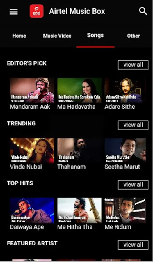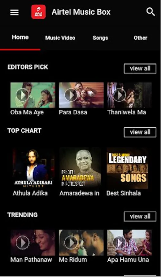 Airtel Music Box is Sri Lanka’s leading subscription service for listening Sinhala Music on your mobile device. This mobile app delivers the finest entertainment experience from location and at any time. Simply subscribe with Airtel and download this free app, and as a part of your music membership and you can instantly listen hundreds of musical numbers from a vast array of genres, on your mobile device with simply the click of a button.