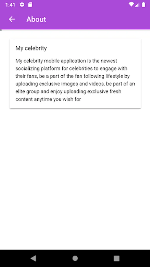 My Celebrity is a celebrity interface app that mainly focuses on celebrities. Where celebrities can upload images and videos through this app and gain more fans.