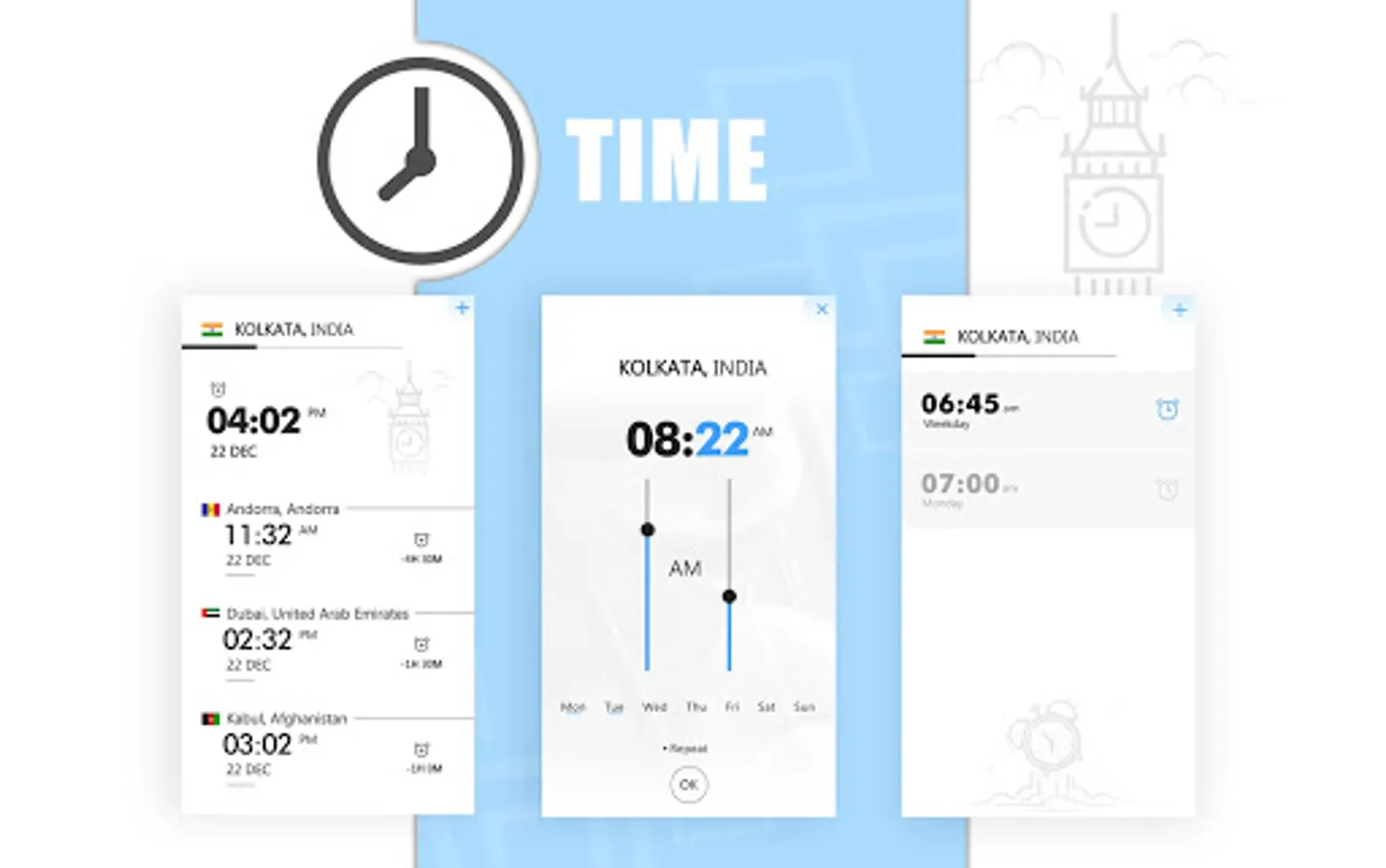 2. Time Converter, time zone comparison & time zone alarm: Time conversion & calculation is handy now. Get time for different time zones. You can set alarm alerts to monitor selected time zones/countries. You can set alarm for & as per multiple time zones. Shows ahead/ back in time of home country in hours: minutes. You can set alarm alerts to monitor selected time zones/countries. You can check other time zones in comparison to any selected time zone and not necessarily your default time zone. You can set different alarms for different time zones & different days too.