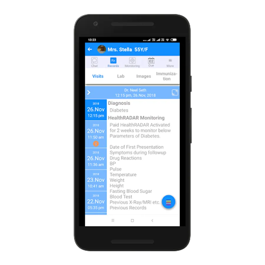 Get health alerts about your patients. Send your long-term care patients pro-active treatment options and preventive care tips. Ask patients to send pictures of their walk, range-of-motion, weeks in pregnancy, skin color changes and much more depending upon their situation. Ensure your patients are complying with blood glucose checks routines, exercising schedules, and vitals checks frequencies. You will have a much better view of patient’s treatment outcome between two visits.