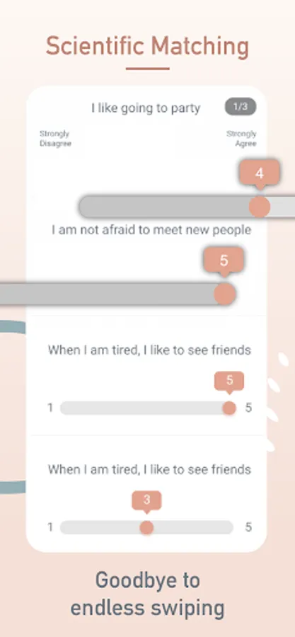 Say goodbye to blind searches and meaningless swiping! EVOL matches you with partners of compatible values and personality traits to develop long-lasting relationship. With our psychology-based algorithm, you are in good hands of deep and quality matching.