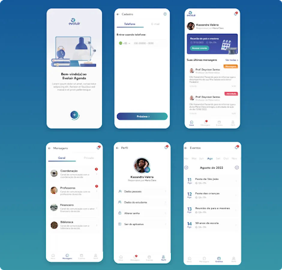 In this application, parents/guardians will be able to follow the student's routine at school, follow school events, follow activities, attendance and messages from teachers, coordinators or the financial sector.