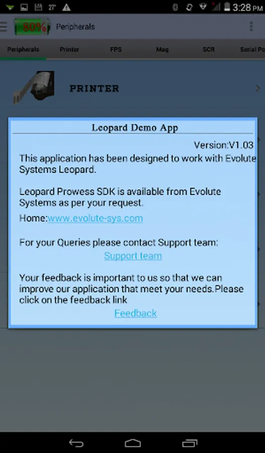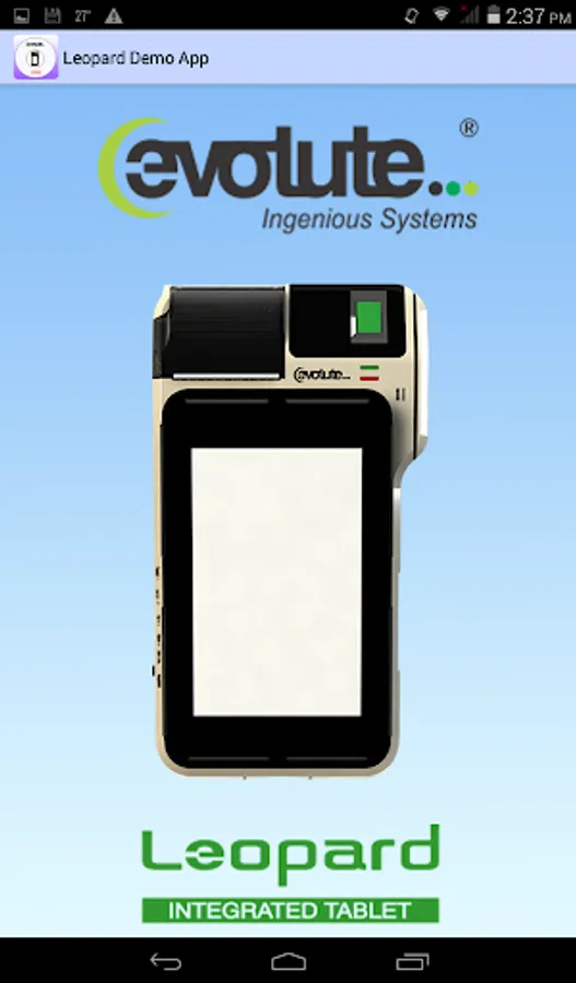 Leopard Prowess SDK, developed in android is used to integrate android applications with Leopard device. Leopard Demo is the sample application developed using the Leopard Prowess SDK to explore the features of the Leopard device. Bluetooth is the communication mode between Leopard and Android device.