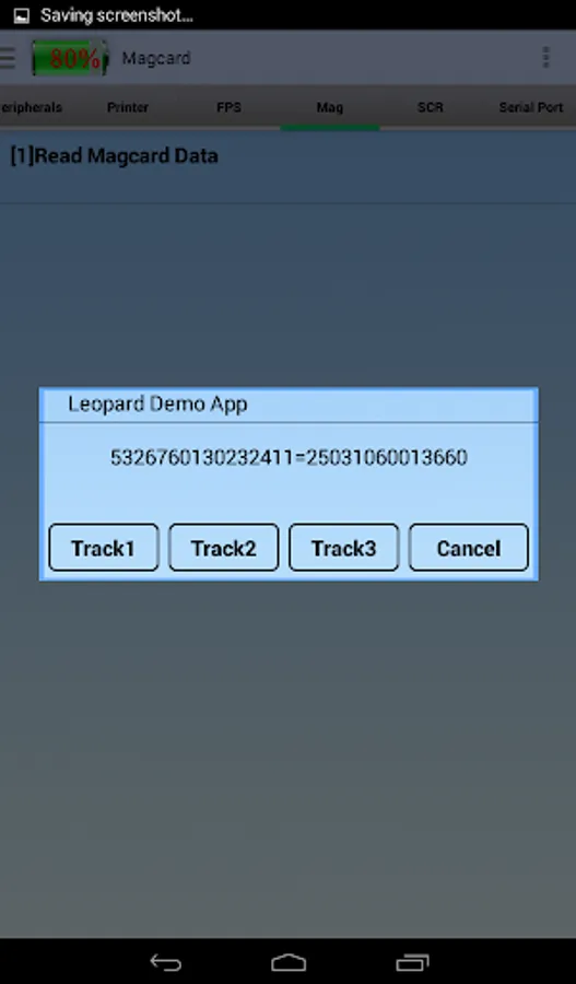 Magnetic card reader reads Track1, Track2 and Track3 data from the magnetic card.
