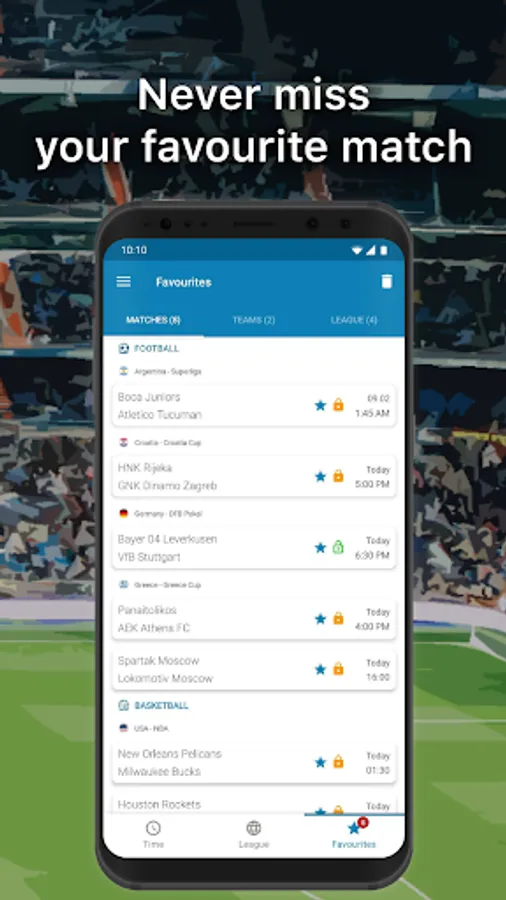 Please note: We don't offer direct livestreams in our app, but provide you with the information where to watch or stream the match.