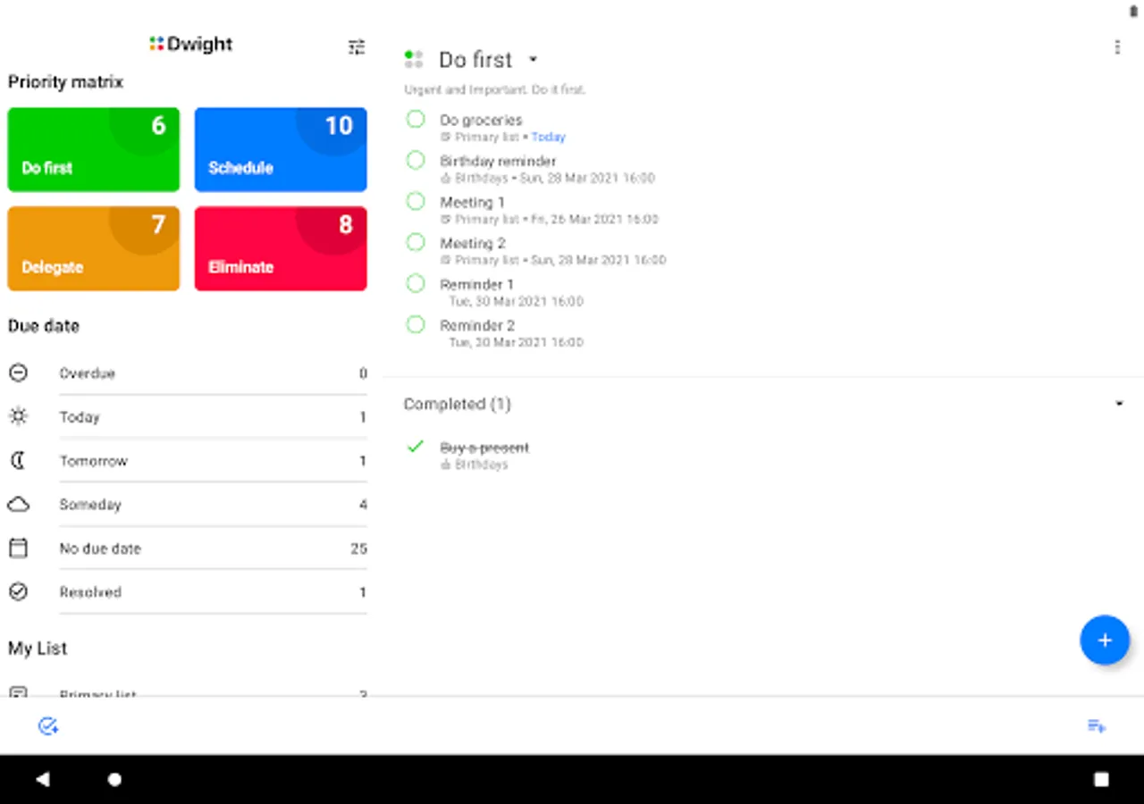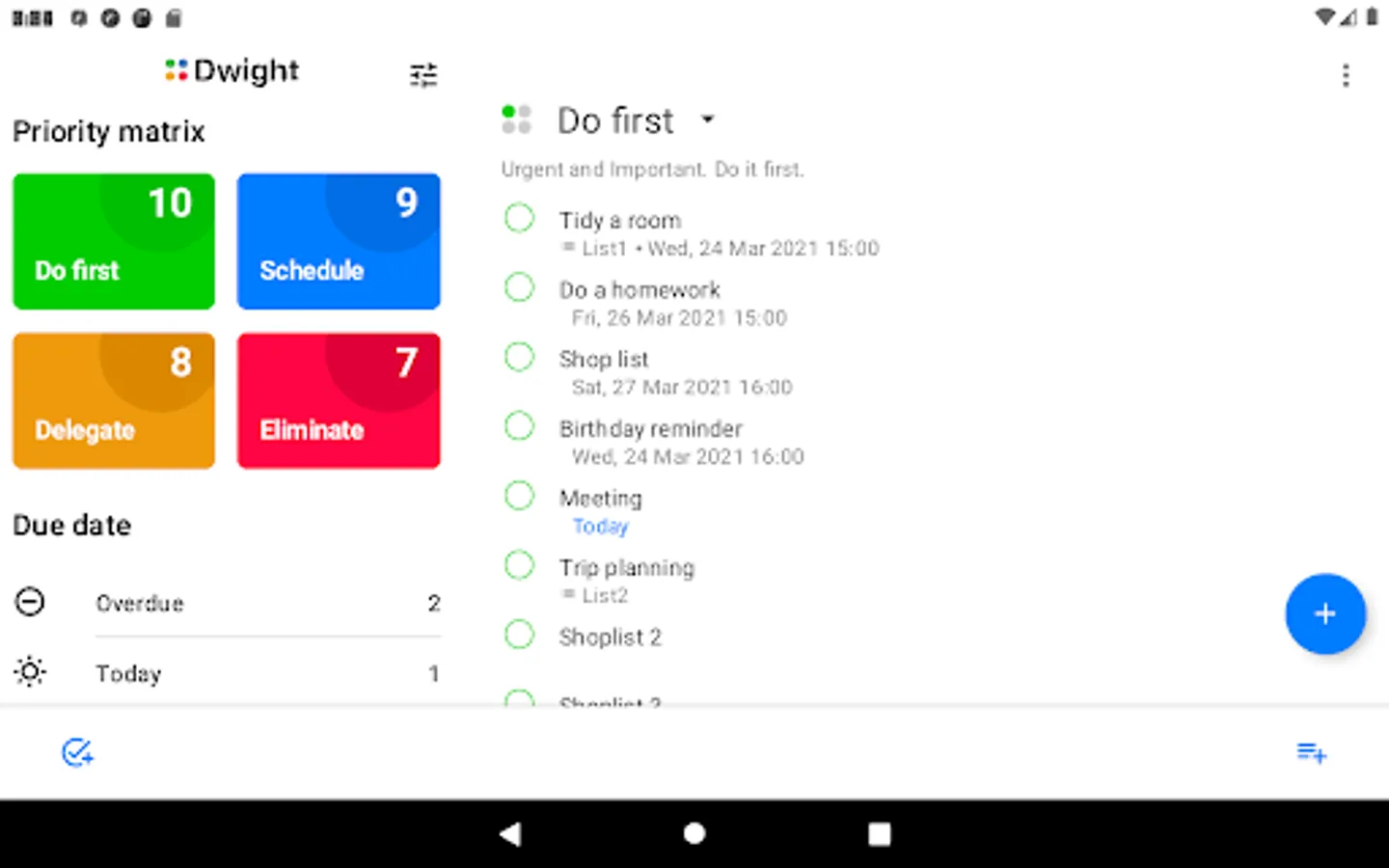 Dwight - Priority Task Matrix is a task management solution based on the Eisenhower principle, helping you filter tasks by urgency and importance and concentrate on what matters to you.