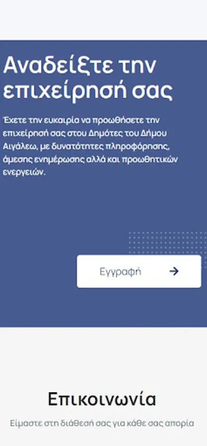 An application that aims to inform the Citizen about the entrepreneurship of our Municipality. It gives the opportunity to search, to be informed and also to be notified of announcements, offers and new businesses.