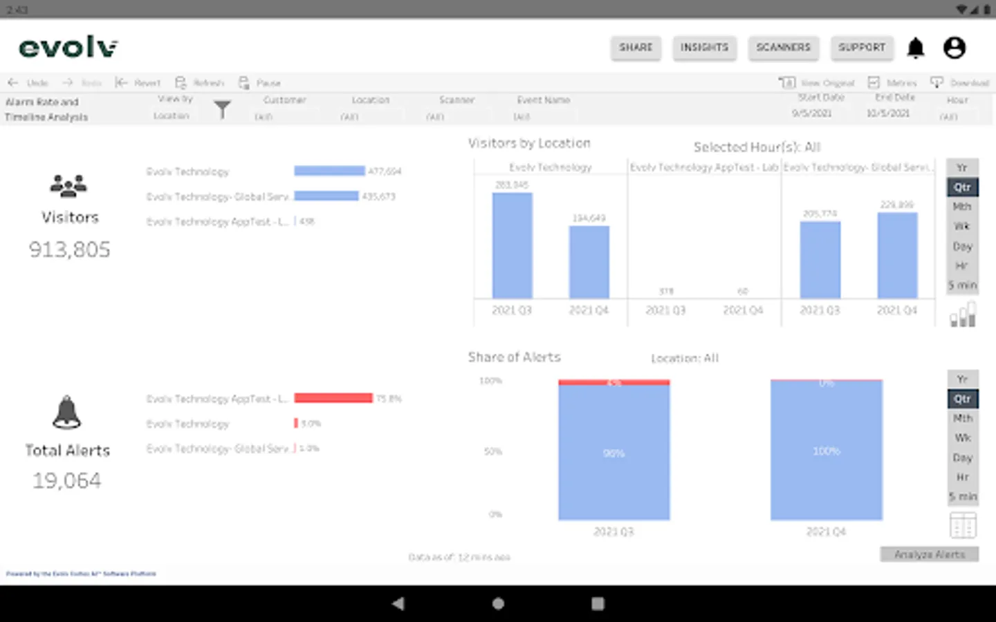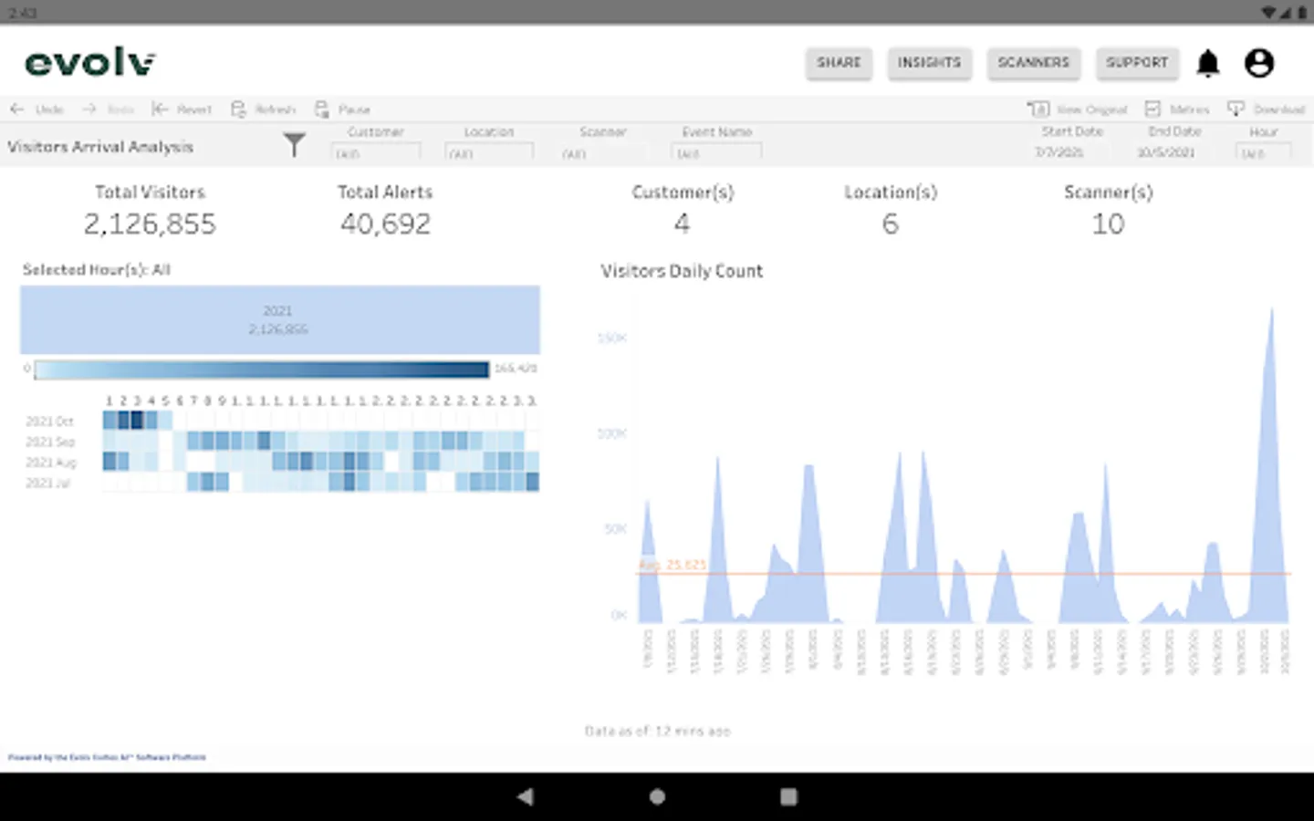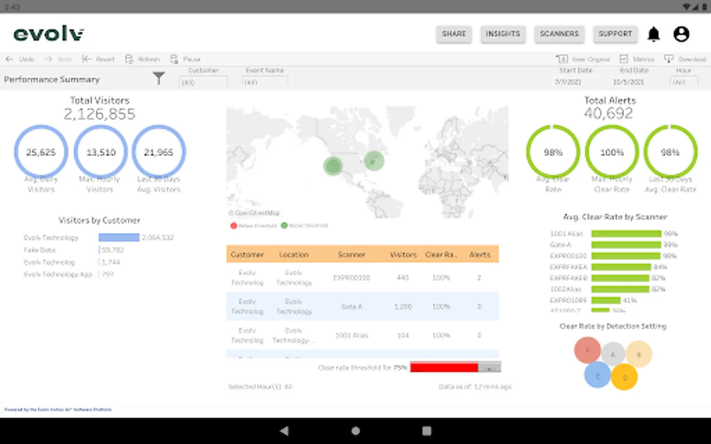 With access to Evolv Insights in the MyEvolv mobile application, venue security and operational leaders can learn: