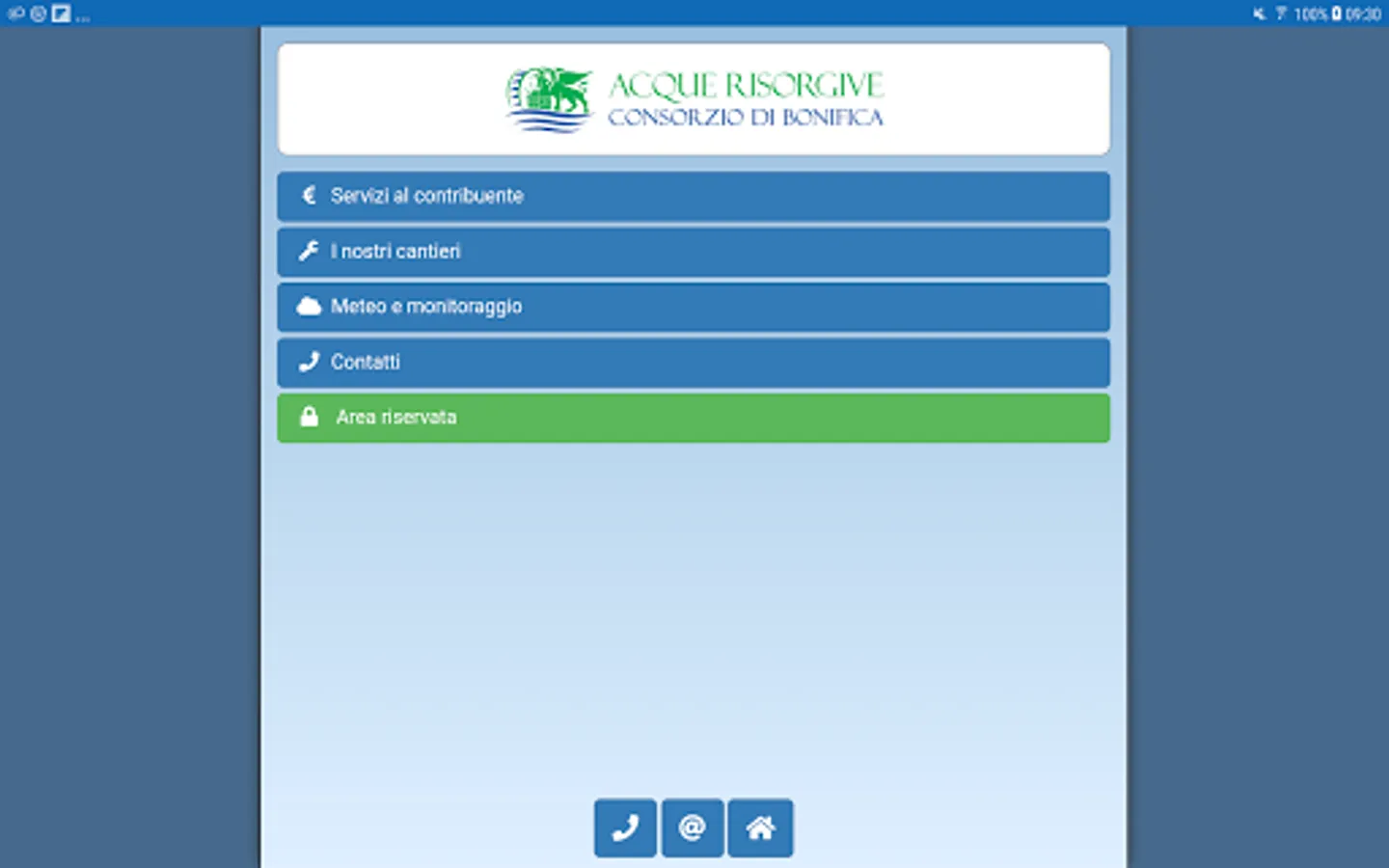 Wherever you are, you'll always know in real time the ordinary and extraordinary maintenance activities that the Consortium has in place and public works in design and construction. You see, with reference to our territory, forecasts and weather data for various parameters (such as rainfall, temperature, wind) and the weather radar, and see bulletins and alarm notifications; you know the hydraulic monitoring data (channel level). Through the "services to the taxpayer" online you will pay the contribution, change your personal data, to know the status of payments, choose to receive the payment notice on the mailbox (eliminating the paper).