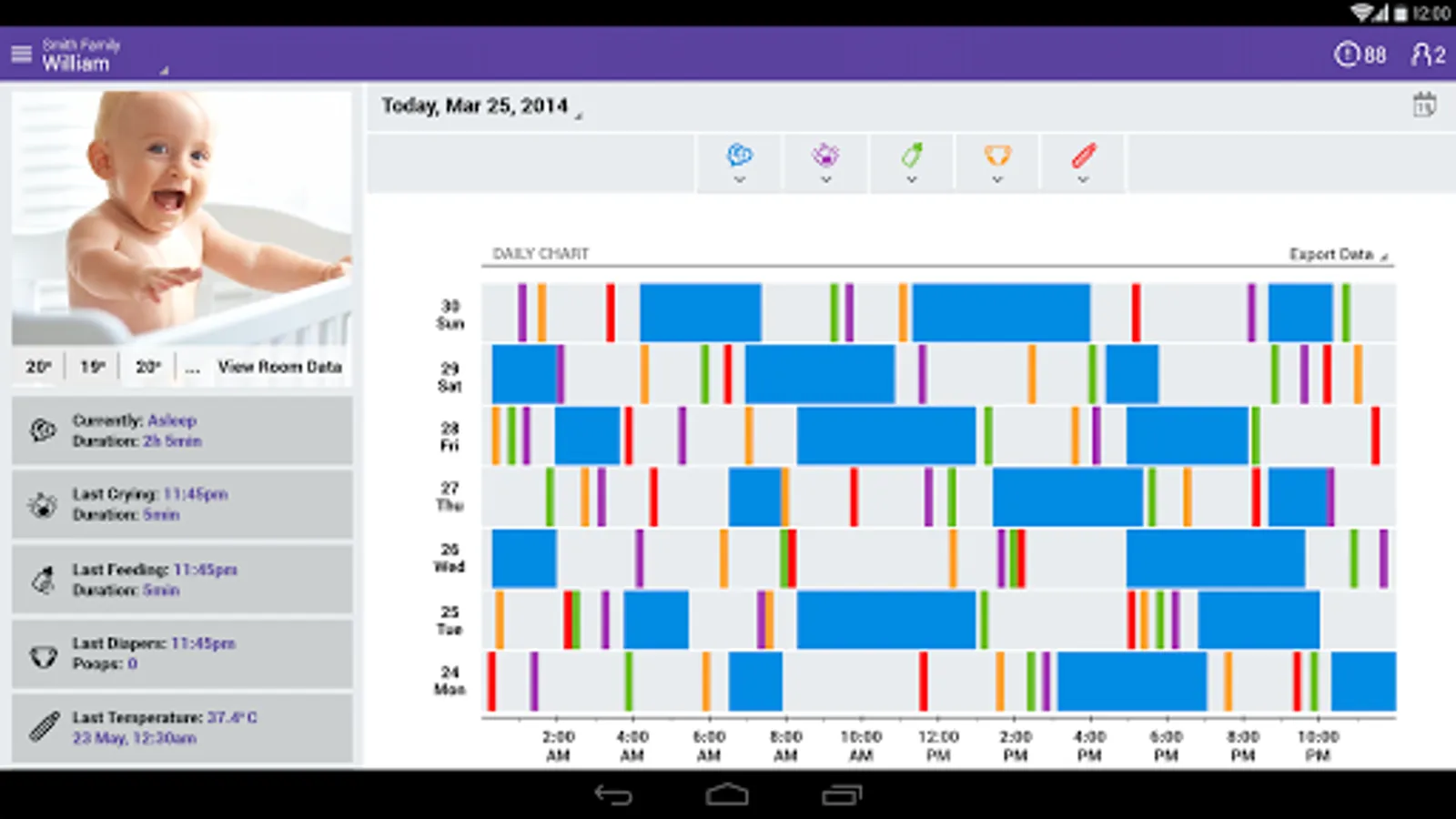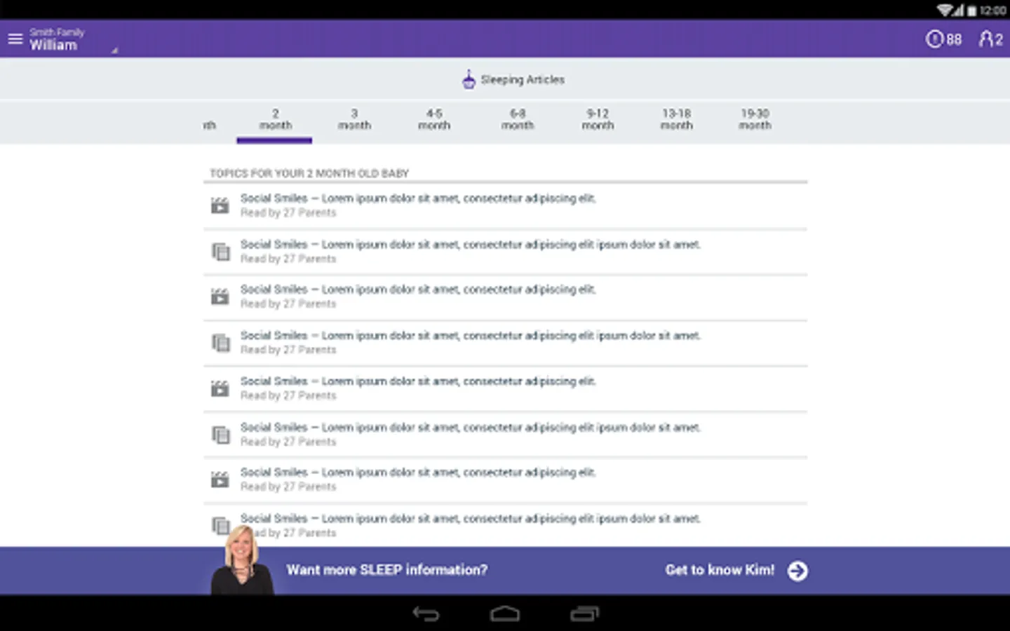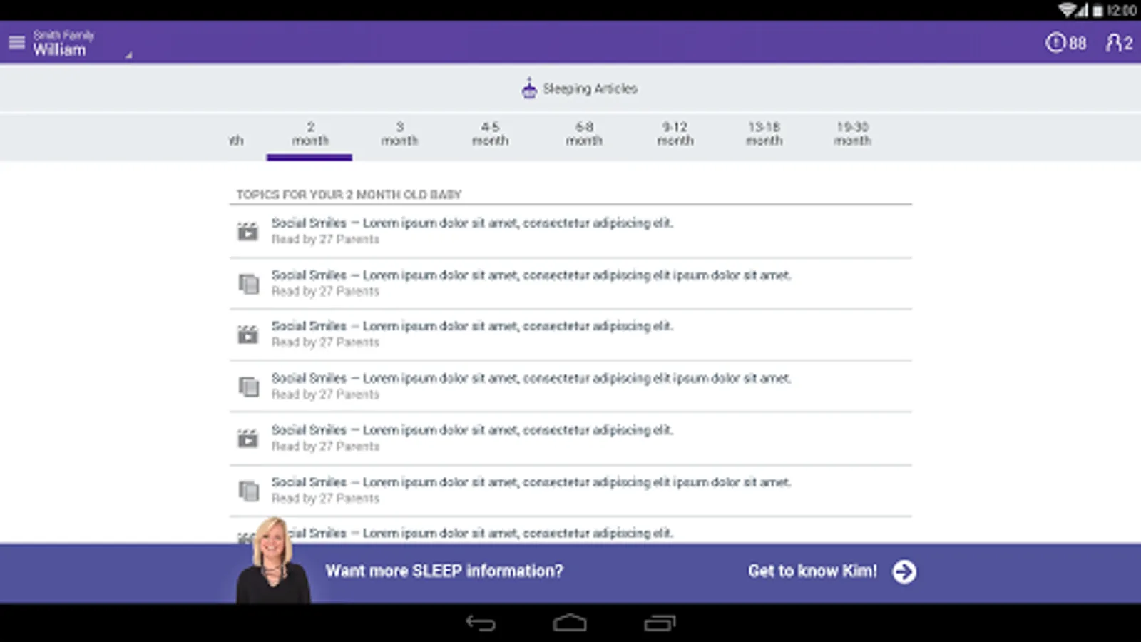 Evoz Baby enables a one-of-a-kind toolbox: a suite of services including baby data tracking, parenting content, and even sleep coaching solutions with Kim West, LCSW-C, “The Sleep Lady”®.