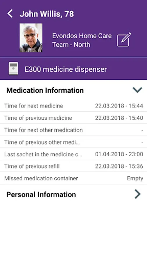 Evondos® mobile application is designed for caregivers, to help them in their daily work in effortless monitoring of the medicine dispensing. Caregivers can check the status of their clients and receive alerts when clients are needing attention or have missed a dose. Caregivers can also send direct text messages to the display of the homecare client’s robot.