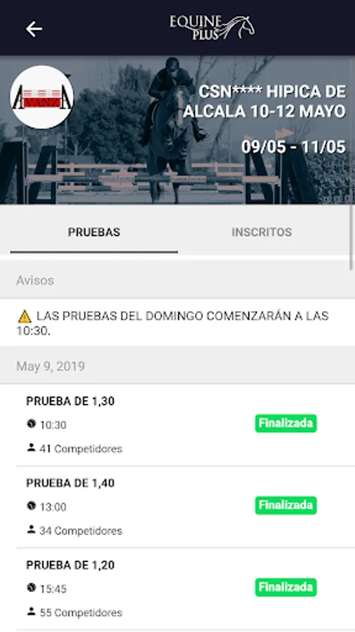 An application that allows you to view the equestrian competitions of Salto and Doma, always without forgetting that, in any competition, there are four basic pillars: riders, owners, sponsors and public and that, without them, there is no contest.