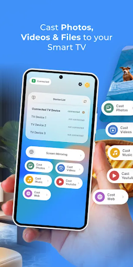 The AirPlay application also provides smart control that can support all TV devices such as Samsung, Sony, LG, Roku, Vizio, Hisense, TCL, Chromecast,... so you can control all TVs with just one smartphone.