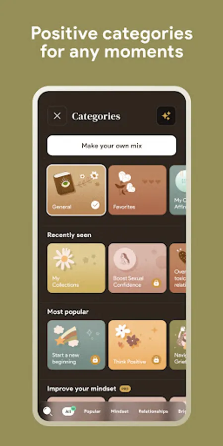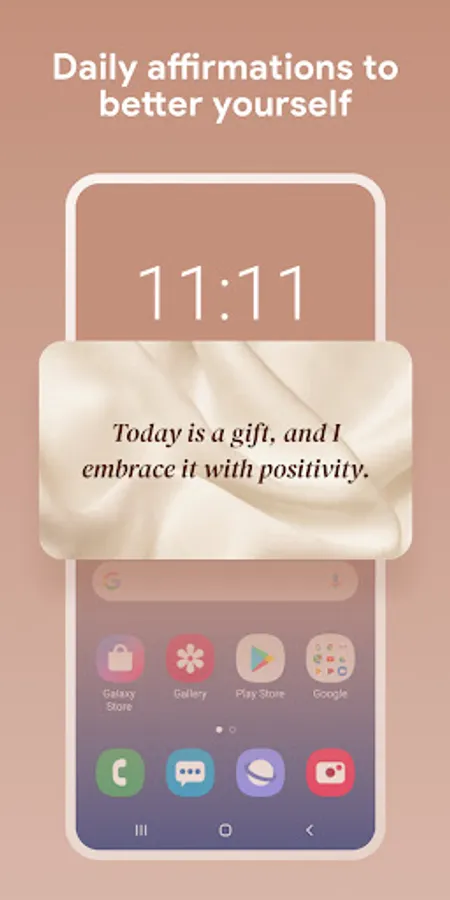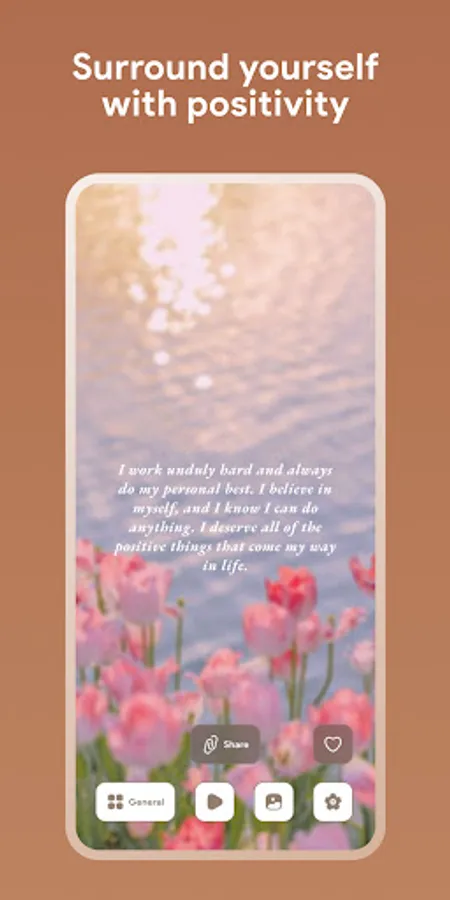 With 50+ affirming categories and more than 10,000+ positive affirmations, our app will positively impact all areas of your life. Our main categories: Affirmations to Attract Love; Heal from heartbreak; Grow as a couple; Attract your crush; Overcome toxic relationship; Achieve self-growth; Body positivity; Be confident; Self love; Self care; Find your happiness; Law of attraction; Think positive; Practice gratitude; Affirmations to Start a new beginning; Succeed in career; Succeed at school; Grow your business; I am affirmations for Manifest wealth; Grief Navigation; Affirmations to Beat depression; Stop overthinking; Positive affirmations to Overcome hard time; Find calm; Reclaim inner peace; Handle panic attacks; Fall Asleep; Start healing journey; Control stress and anxiety; Daily affirmations to Find Motivation; Practice faith; Connect with the universe; Positive affirmations to Start your day; Focus on your health; Life with chronic pain; Affirmations to Stop smoking; Conquer addiction; I am affirmations for Fitness; Inspiring question; Motivation Quote; For kid; Daily affirmations to Enjoy your pregnancy; Parenting;... and more