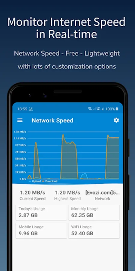 Network Speed a small, fast and free network tool. You can monitor your network speed in real time and show accurate info instantly in the background.