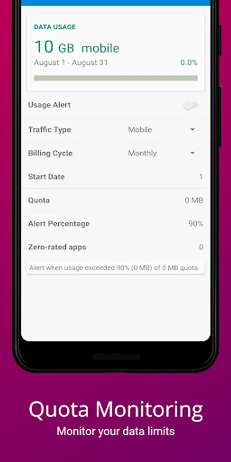 β Data usage alert (Bandwidth monitoring)
