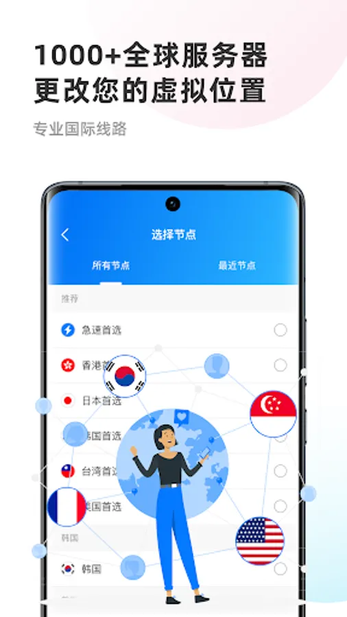 Travel around the world with just one click. Yilian VPN will automatically select the fastest server according to your location, of course, you can also choose the server node you want to connect to from our VPN server list.