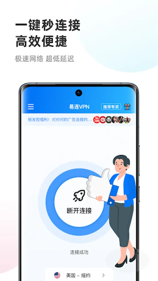 Yilian VPN has a built-in ad blocker, no pop-up windows, and no soft broadcasts. We are committed to providing you with a zero-advertising application environment.