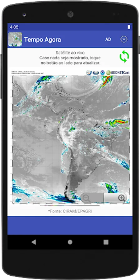 The animated maps shown by the app are sequences of satellite photos taken in real time over the past few hours and available through the EPAGRI / CIRAM website.