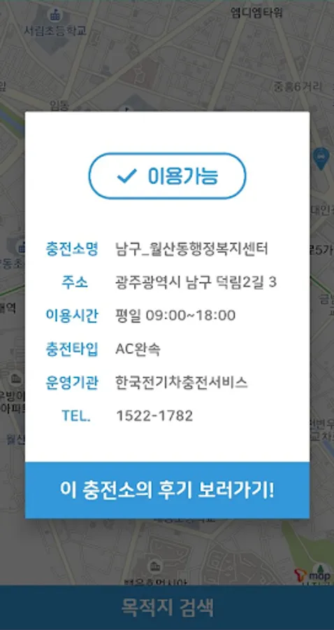 Clicking on the marker will display information about the chargers in the charging station and their availability.