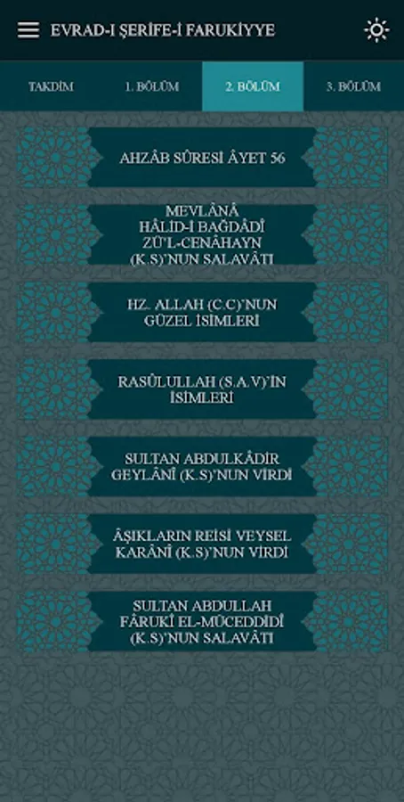 This application contains the book "Evrâd-ı Şerîfe-i Fârûkiyye" written by