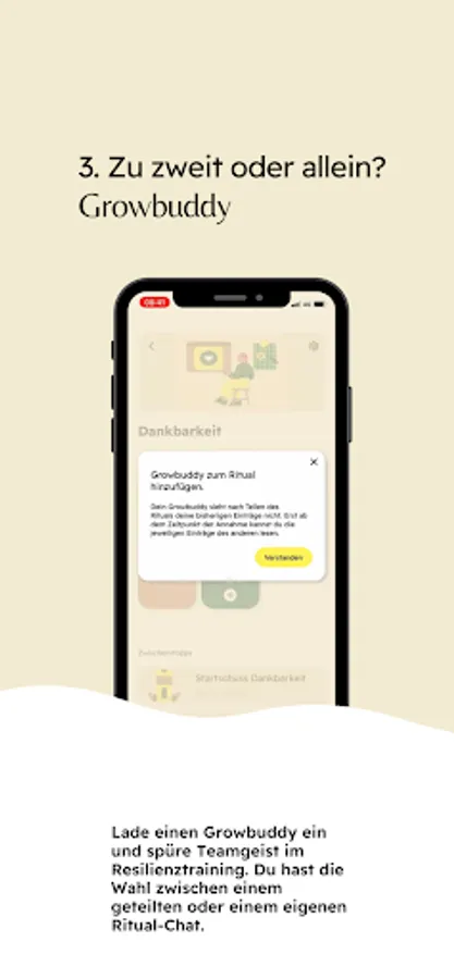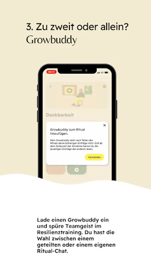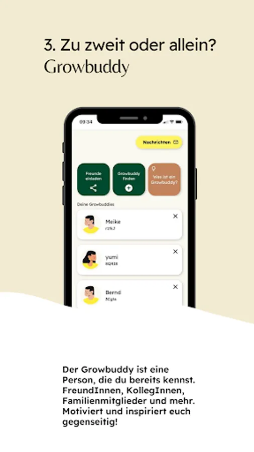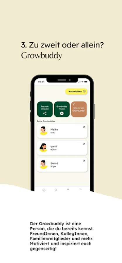 The special feature: Unique team spirit! Don't face the challenge alone. Choose the Growbuddy mode to gain mental strength together with like-minded people.
