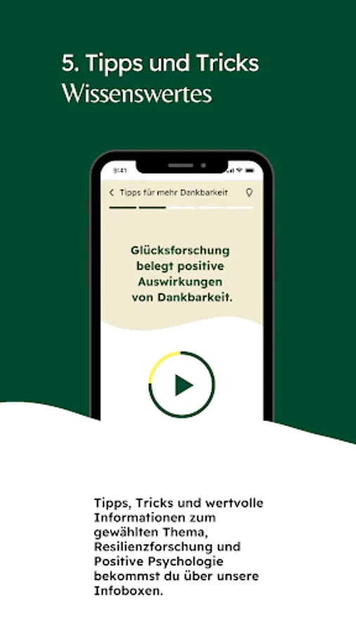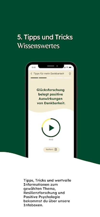 Resilyou offers you scientifically based, short exercises to promote your resilience. With the app you can learn more about your personal and social resources and use them better in crises - with inner strength nothing can throw you off track so quickly!