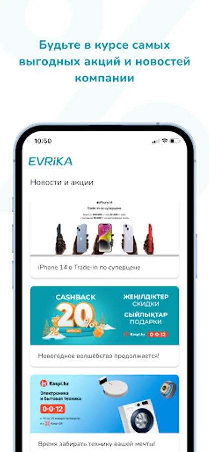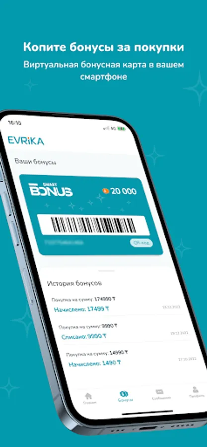 * Accumulate bonuses for purchases in EVRIKA.