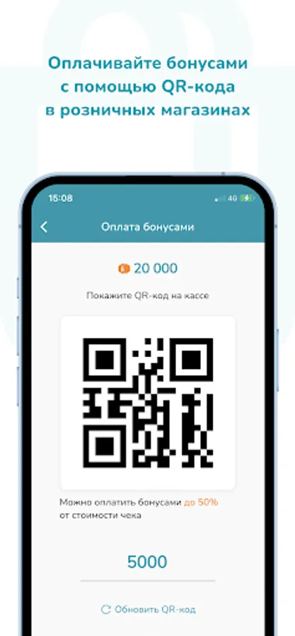 * Pay with bonuses using a QR code in retail stores.