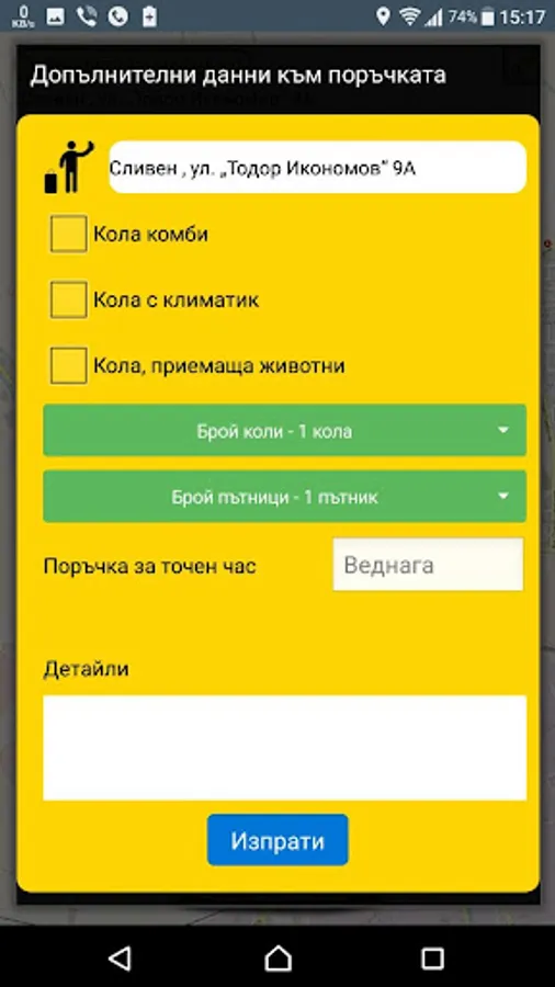 In case of forbidden items in the taxi, problems encountered during the execution of your order, incorrect or inappropriate treatment of our drivers, please contact us.