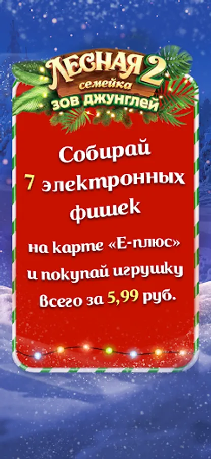 You can also check in the mobile application how many electronic chips you have accumulated on your E-Plus bonus card! For every 7 electronic tokens, you can purchase a toy from the collection "Forest Family 2: Call of the Jungle!" in supermarkets and hypermarkets "Euroopt" from November 15, 2021 to January 16, 2022 at a promotional price!