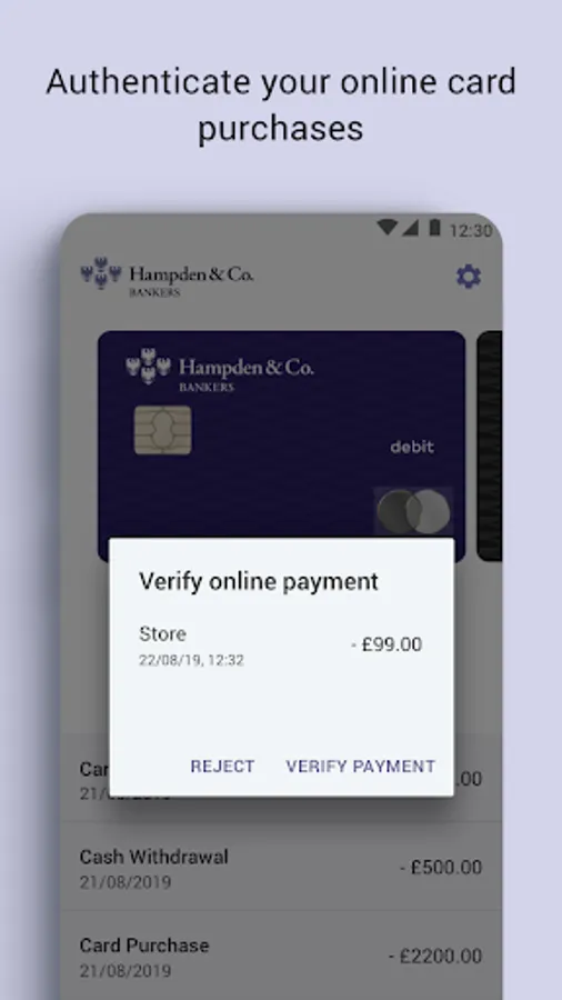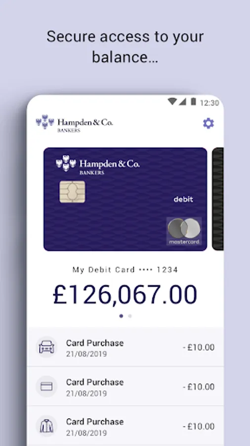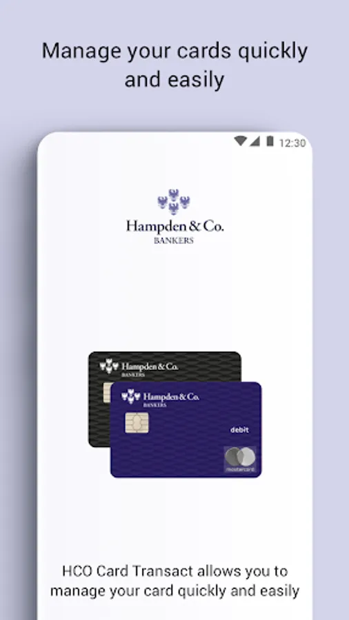 To complement the personal service provided by our Private Bankers we also provide the ability to manage your cards online via our app “Hampden & Co Card Transact”.