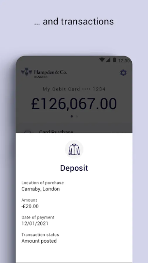 On the Hampden & Co Card Transact app you can: