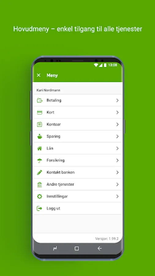 By selecting "Go to online banking" from the main menu, you get access to the same functionality and menu as in the online banking. Certain pages in the online bank are not adapted to mobile yet, work is underway to improve them.