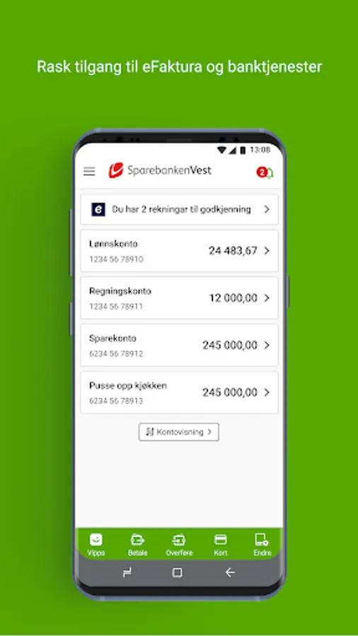 Make everyday life easier with the mobile bank from Sparebanken Vest, department Etne. You can check your balance, transfer between your own accounts, pay bills and process eInvoices while you're on the go. Login is simplified with the use of a 4-digit code or fingerprint.