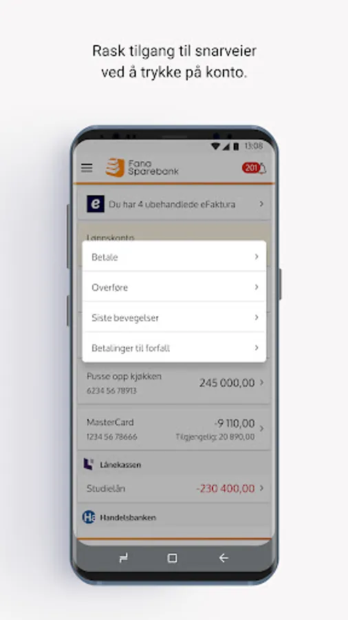 Fingerprint Logon or personal code makes it easy including checking balances, make payments and get a full overview of their savings - right from your mobile phone.