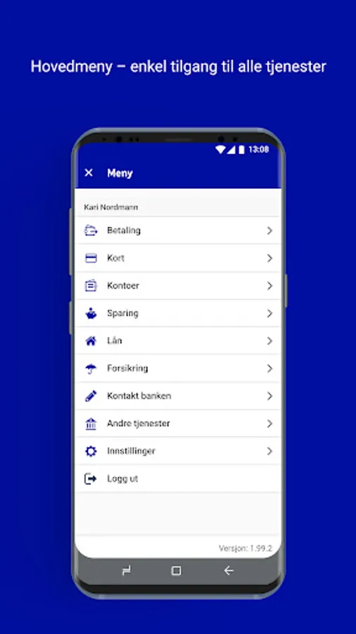 By choosing "Go to Internet Banking" from the main menu, you get access to the same functionality and menu as the Internet bank. Some pages in the online bank have not yet been adapted to mobile, but this is being worked on to improve.