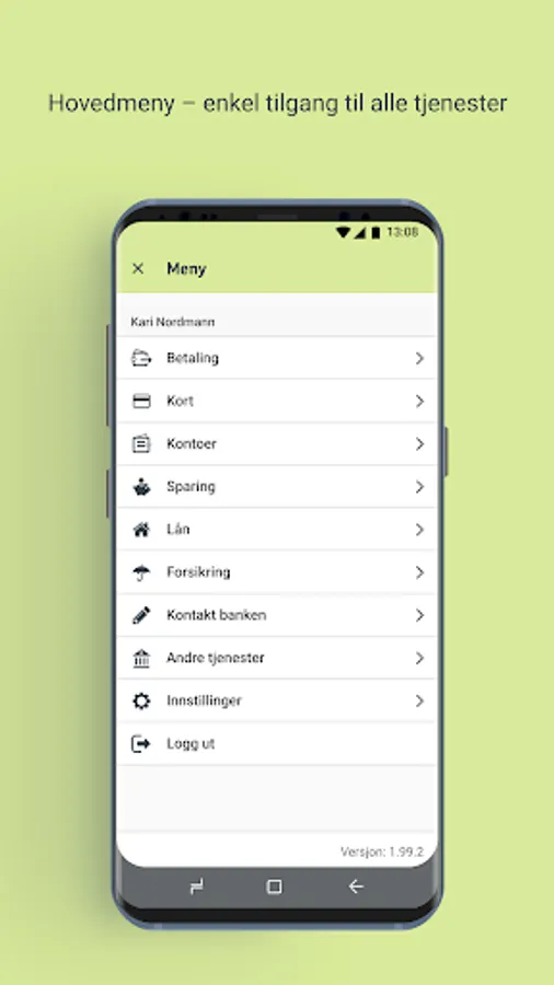 By choosing "Go to Internet Banking" from the main menu, you get access to the same functionality and menu as the Internet bank. Some pages in the online bank have not yet been adapted to mobile, but this is being worked on to improve.