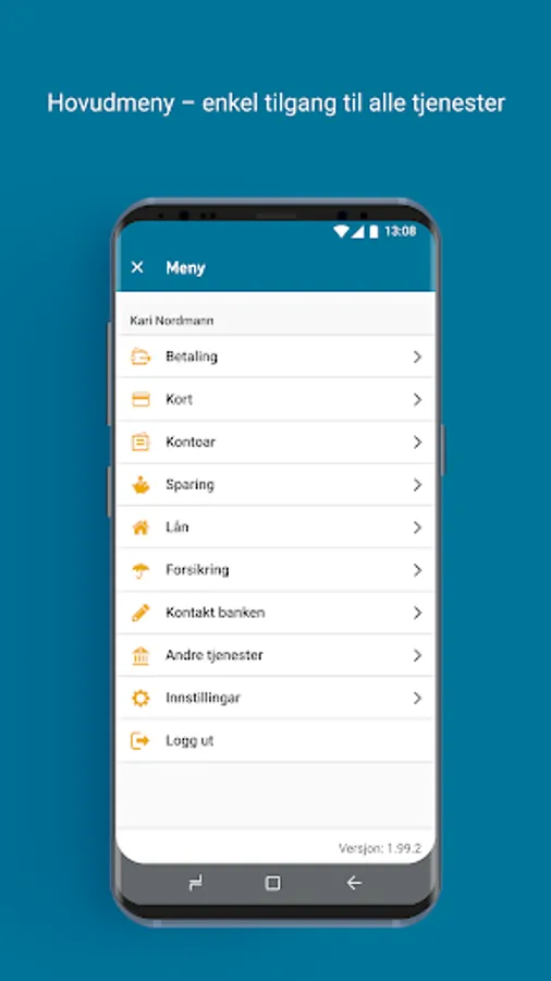 By selecting "Go to online banking" from the main menu, you get access to the same functionality and menu as in the online bank. Some pages in the online bank are not customizable for mobile yet, work is being done on improvement.