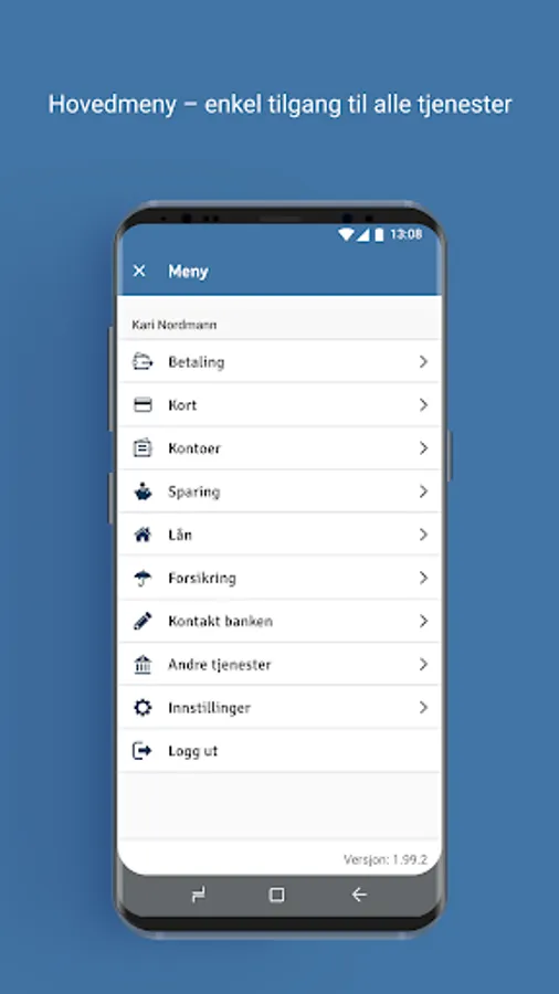By choosing "Go to Internet Banking" from the main menu, you get access to the same functionality and menu as the Internet bank. Some pages in the online bank have not yet been adapted to mobile, but this is being worked on to improve.